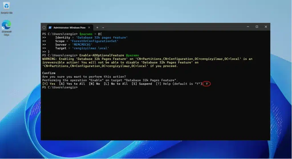 PS C:\Users\cengiz> Enable-ADOptionalFeature @params