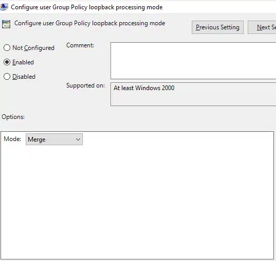 Computer Configuration > Administrative Templates > System > Group Policy > Configure user Group Policy loopback processing mode