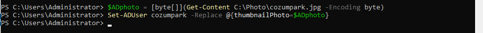 Set-ADUser cozumpark -Replace @{thumbnailPhoto=$photo}