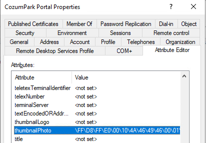 Bu işlemden sonra ADUC üzerinden objeyi kontrol ettiğimiz zaman thumnailPhoto bölümünde değer olduğunu görebiliyoruz.