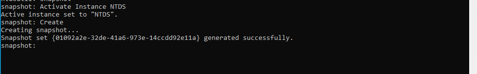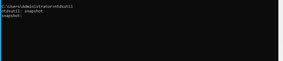 ilk komutumuz ntdsutil - snapshot olacak. Snapshot oluşturmak için AD DS aktif olarak çalışması gerekmektedir.