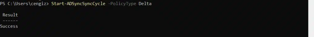 - Eğer tam bir senkronizasyon işlemi başlatmak istiyorsak, yani tüm objelerin Azure AD ile ilk defa veya yeniden senkronize edilmesini sağlamak istiyorsak, aşağıdaki komutu kullanabiliriz: