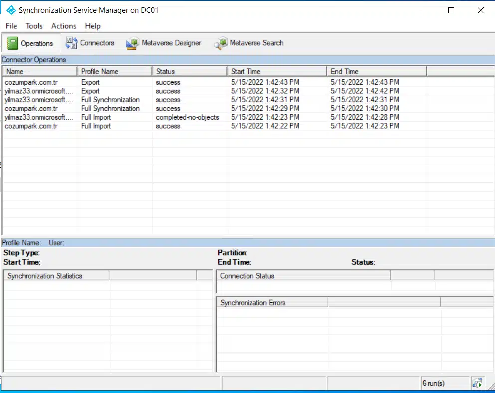 Kurulum ve yapılandırma işlemleri tamamlandıktan sonra, Synchronization Service Manager uygulamasını açabiliriz. Bu uygulama, kurulum dizininiz içerisindeki miisclient isimli dosya aracılığıyla erişilebilir.