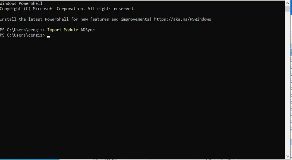 Azure Active Directory senkronizasyon işlemlerini yönetmek için öncelikle ADSync modülünü sistemimize dahil etmemiz gerekmektedir: