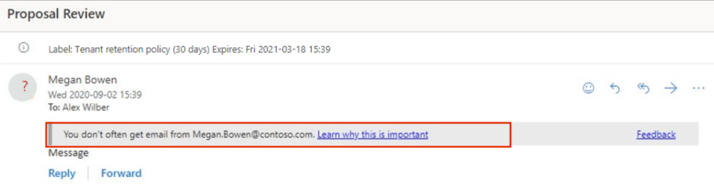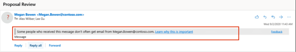 “First Contact Safety Tip“, Exchange Online Protection‘ın bir parçası olarak sunulan bir güvenlik özelliğidir. Kullanıcılar, daha önce hiç iletişimde bulunmadıkları kişilerden gelen e-postaları aldıklarında, bu özellik tarafından bir güvenlik ipucu (safety tip) ile uyarılırlar. Bu ipucu, kullanıcıları potansiyel olarak şüpheli veya zararlı içeriklere karşı dikkatli olmaya teşvik eder.