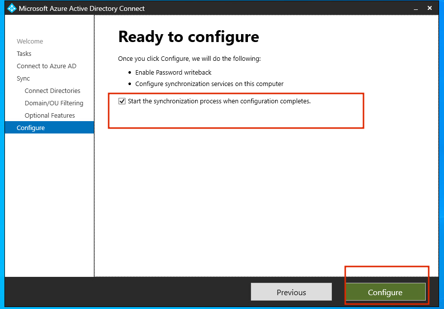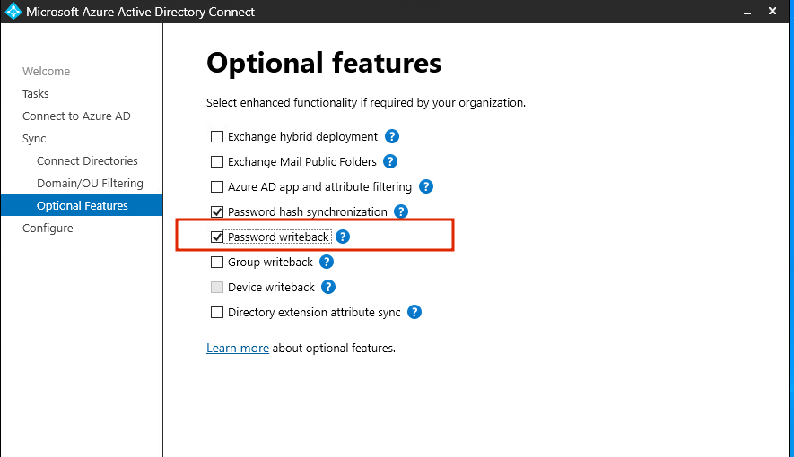Optional features adımın da ise Password writeback seçeneğini işaretliyoruz.