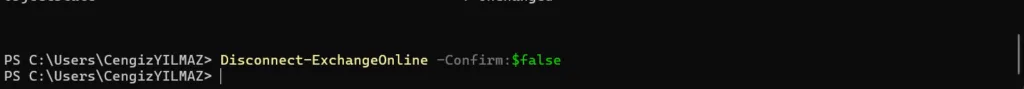 İşlemlerinizi tamamladıktan sonra Exchange Online PowerShell oturumunu kapatmanız önemlidir. Aksi takdirde, açık oturumlar kullanılmaya devam edebilir ve yeni oturum başlatma sorunlarıyla karşılaşabilirsiniz. Oturumu kapatmak için şu komutu kullanın: