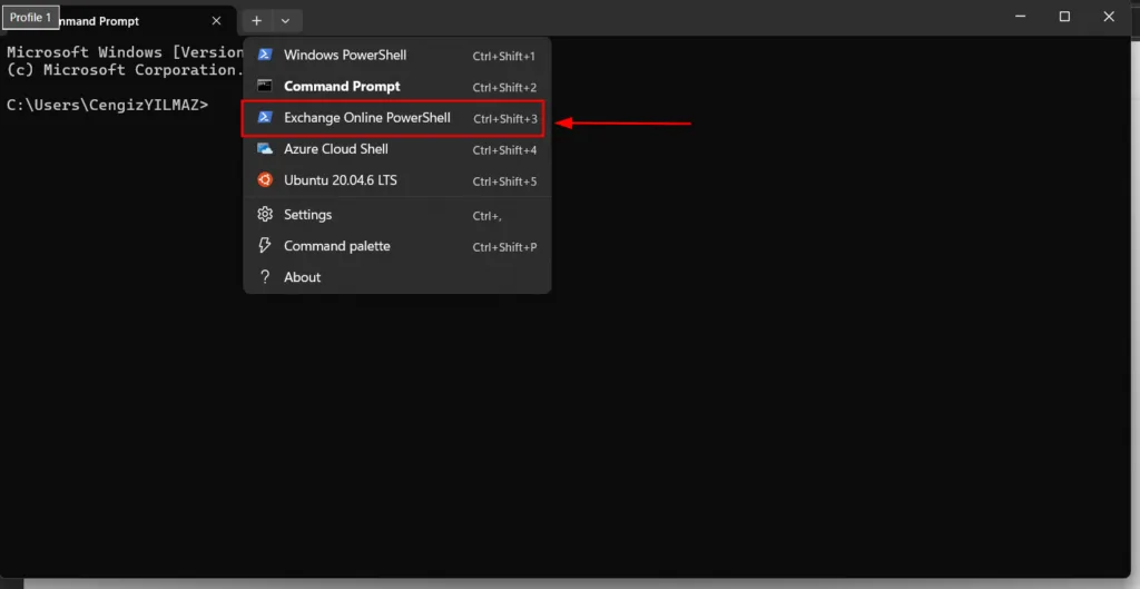 Windows Terminal üzerinden Exchange Online PowerShell profili bağlantılarınızı kolaylaştırabilirsiniz.
