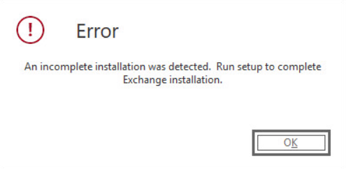 "An incomplete installation was detected. Run setup to complete Exchange installation"