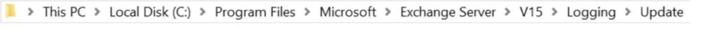 Yükleme sırasında log dosyaları, Exchange kurulum dizininde Logging > Update klasöründe tutulur. Kurulum dosyası, Exchange Server kurulum yolunu belirlemek için şu kayıt defteri değerini sorgular: