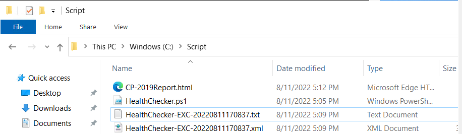 Exchange Server Health Check Scriptini çalıştırdığınız zaman, Scriptin bulunduğu klasör içerisinde 2 farklı türde dosya oluşmaktadır,