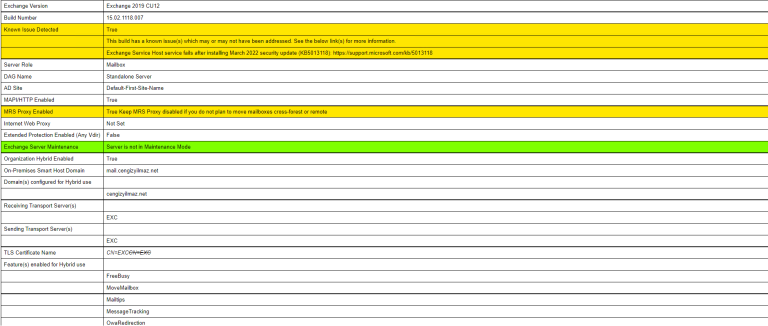 Exchange Server Health Check raporu ile, sunucularınızın sağlığını ve performansını optimize etmek için değerli bilgiler sunar. Belirtilen önerilere uyarak, sisteminizin güvenli ve verimli bir şekilde çalışmasını sağlayabilirsiniz.