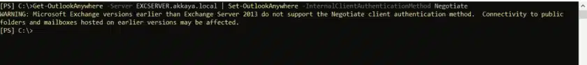 Get-OutlookAnywhere | Set-OutlookAnywhere -InternalClientAuthenticationMethod Negotiate