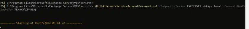 .RollAlternateServiceAccountPassword.ps1 -ToSpecificServer EXCSERVER.akkaya.local -GenerateNewPassword AKKAYACP-ASA$