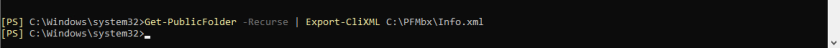 Mevcut public folder bilgilerini toplamak için aşağıdaki komutları kullanabilirsiniz. Bu komutlar, public folder istatistiklerini ve izinlerini XML dosyası olarak dışa aktarır: