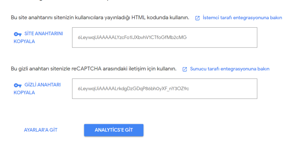 Öncelikle reCAPTCHA (google.com) adresinden size özel bir anahtar üretmeniz gerekmektedir. Sayfa görünümü aşağıdaki gibidir;