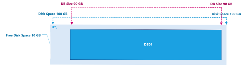 Bu durum, silinen veya taşınan içeriklerin yer kaplamayı bırakmasıyla açıklanabilir. Örneğin, 100 GB’lık bir veritabanında bulunan bir posta kutusundan 20 GB’lık e-postalar silindiğinde, veritabanının boyutu 80 GB’a düşmeyip 100 GB olarak kalır. Ancak, silinen bu 20 GB, veritabanı içinde “White Space” olarak adlandırılan kullanılabilir alan olarak yerini korur.