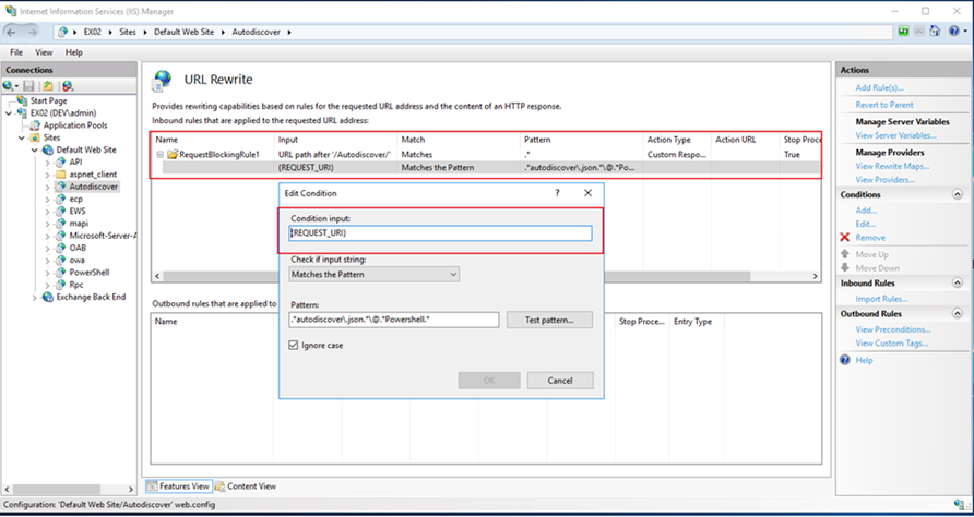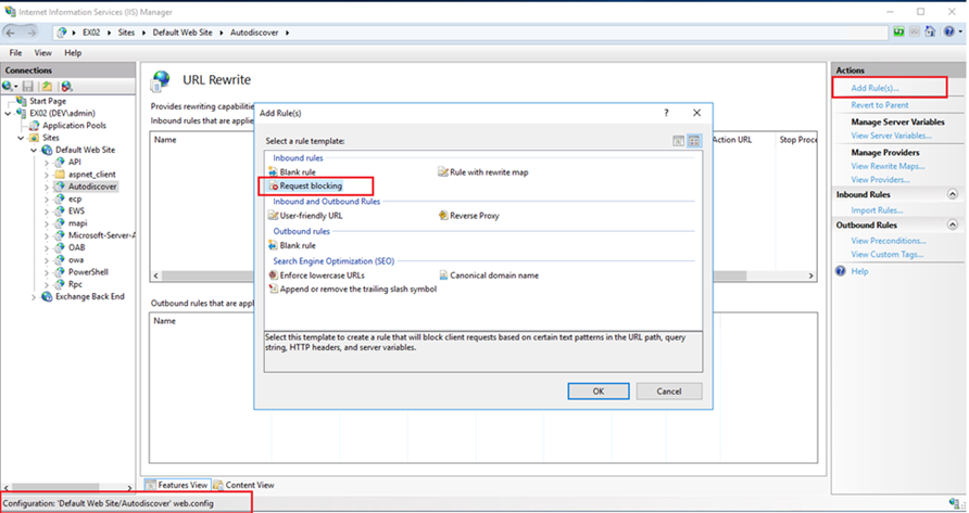 Öncelikle IIS - Default Site - AutoDiscover - URL Rewrite adımlarını takip ediyoruz.