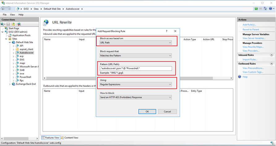 On-Prem Exchange Server kullanıcıları URL Rewrite kullanarak bağlantı noktalarını engelleyebilirler. Bu yöntem Microsoft tarafından geçiçi çözüm olarak kabul edilmektedir.