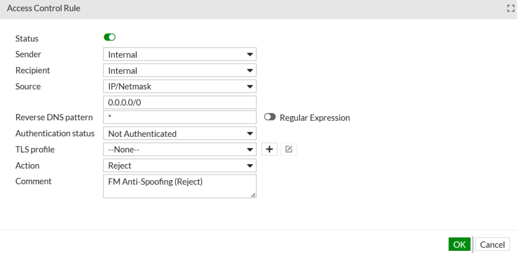 Fortimail - Policy - Access Control adımlarını takip ediyoruz.