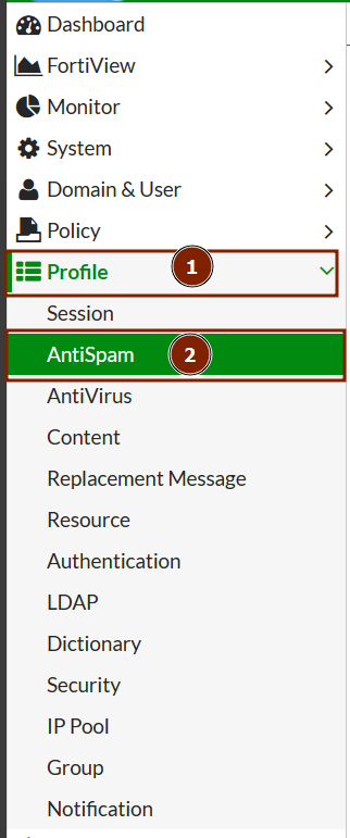 Fortimail - Profile - AntiSpam adımlarını takip ederek, Inbound profili açın.