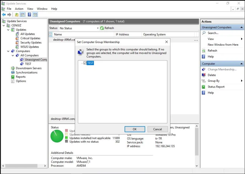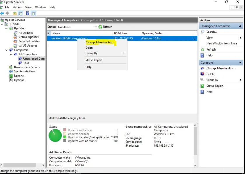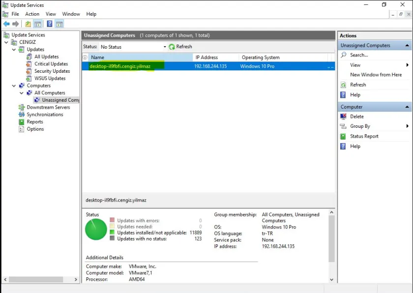Windows Server Update Services (WSUS) yapılandırmasını tamamladıktan sonra, ilgili ayarları grup ilkesi aracılığıyla uyguladığınız bilgisayarlar, WSUSkonsolunda varsayılan olarak Computer – All Computers – Unassigned Computers kategorisi altında listelenir.