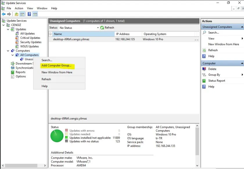 - WSUS Üzerinde Group Oluşturma ve Bilgisayar Taşıma İşlemleri