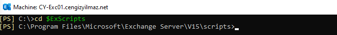 Exchange Server Maintenance Mode aktif hale getirmek için kullanacağımız scriptler kurulum dizininin altında yer alır ve EMS (Exchange Management Shell) üzerinden aşağıdaki komut ile ilgili dizine erişebilirsiniz