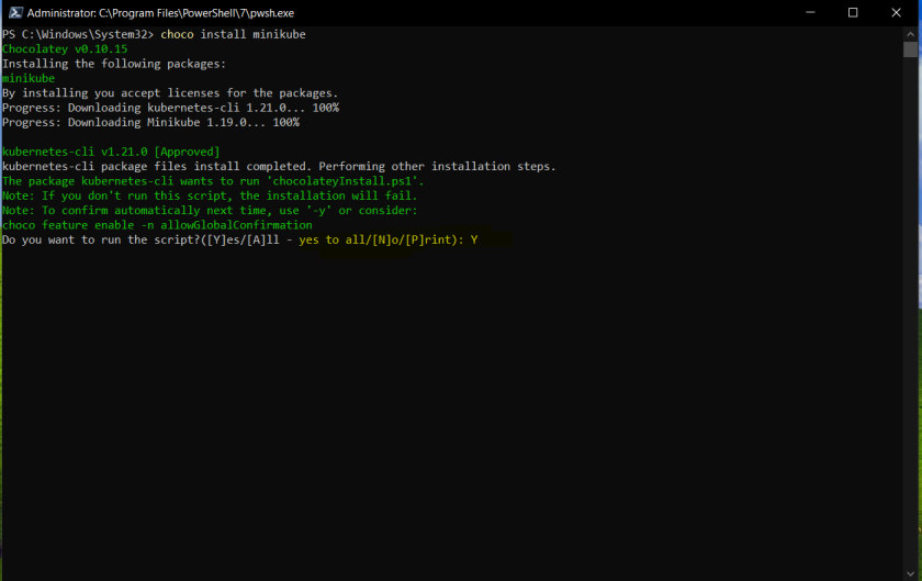 Minikube, yerel bir Kubernetes kümesi çalıştırmanıza olanak tanır. Minikube’u Chocolatey kullanarak kolayca yüklemek için aşağıdaki PowerShell komutunu kullanabilirsiniz: