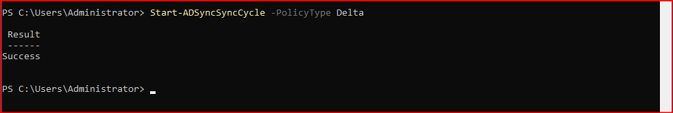 Entra ID Connect üzerinde Sync için özel bir OU veya Grup kullanıyorsanız oluşturmuş olduğumuz yeni Grubu veya OU’yu dahil etmeniz gerekmektedir. Benim ortamım da özel bir filtrelendirme olmadığı için bu işlemleri gerçekleştirmiyoruz ve Powershell ile Delta Sync işlemini başlatıyorum.