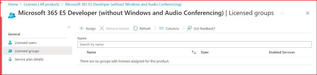 Şimdi ise Grup için lisans ataması gerçekleştirmemiz gerekmektedir, bu işleme başlamadan önce Entra ID üzerinde bulunan Lisanslarımızı kontrol edelim;