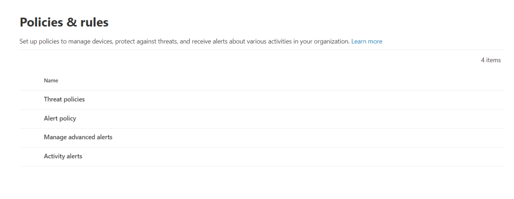 Öncelikle https://security.microsoft.com/ adresine giriş yapıyoruz ve Policies & rules adımına geliyoruz.