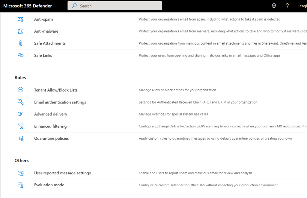 Exchange Online e-posta kullanıcıları için Phishing, Spam gibi zararlı e-postaları engellemek için filtrelemelerle hizmet vermektedir.