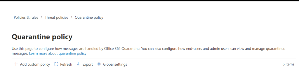 Policies & Rules adımında Threat Polices adımına geliyoruz ve Quarantine Policies’e tıklıyoruz.