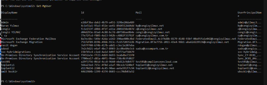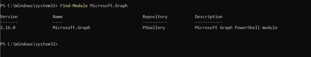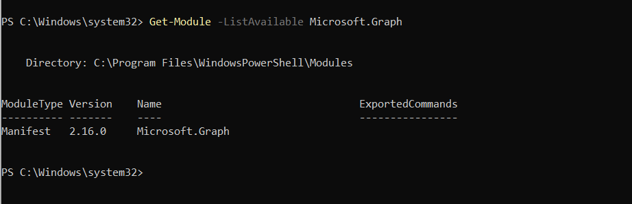 MSGraph ve MSGraph API Beta modüllerini başarılı bir şekilde yükledik, şimdi ise modüllerin doğrulamasını gerçekleştirebiliriz.
