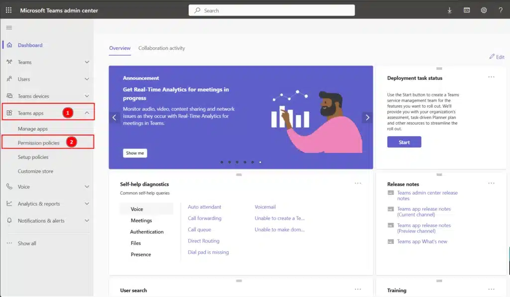 Teams Admin Center‘da yetkili hesabınız ile oturum açtıktan sonra, sol menü de bulunan;