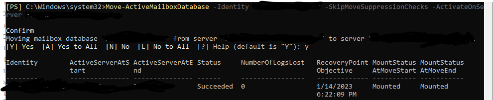 Move-ActiveMailboxDatabase -Identity "DB01-DAG" -SkipMoveSuppressionChecks -ActivateOnServer "EXC.contoso.com"
