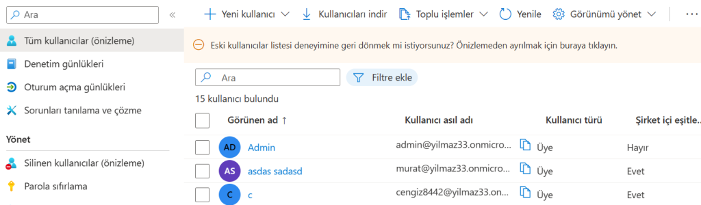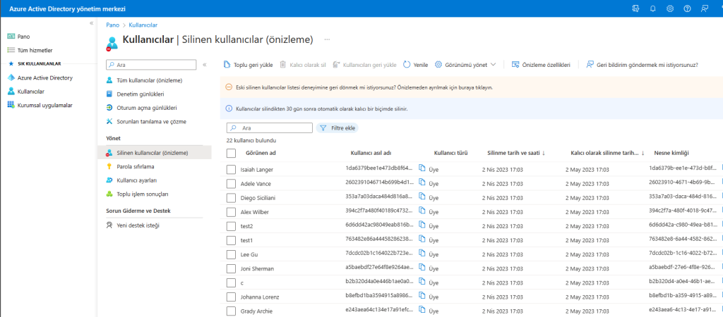 Azure AD Silinmiş Kullanıcıları Geri Yükleme İşlemi