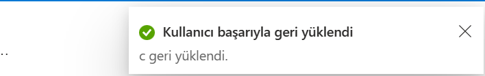 Kullanıcıyı geri yükledikten sonra sağ üst bildirim köşeseinde geri yüklendiğini bildiren bir mesaj görüntülenmektedir.