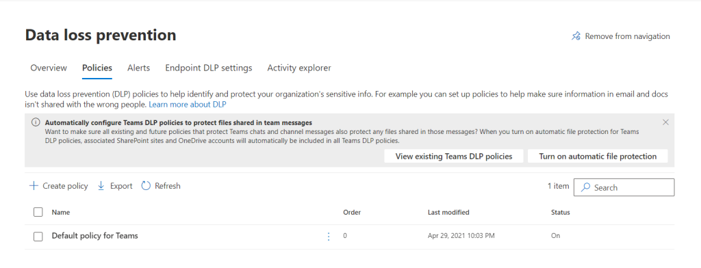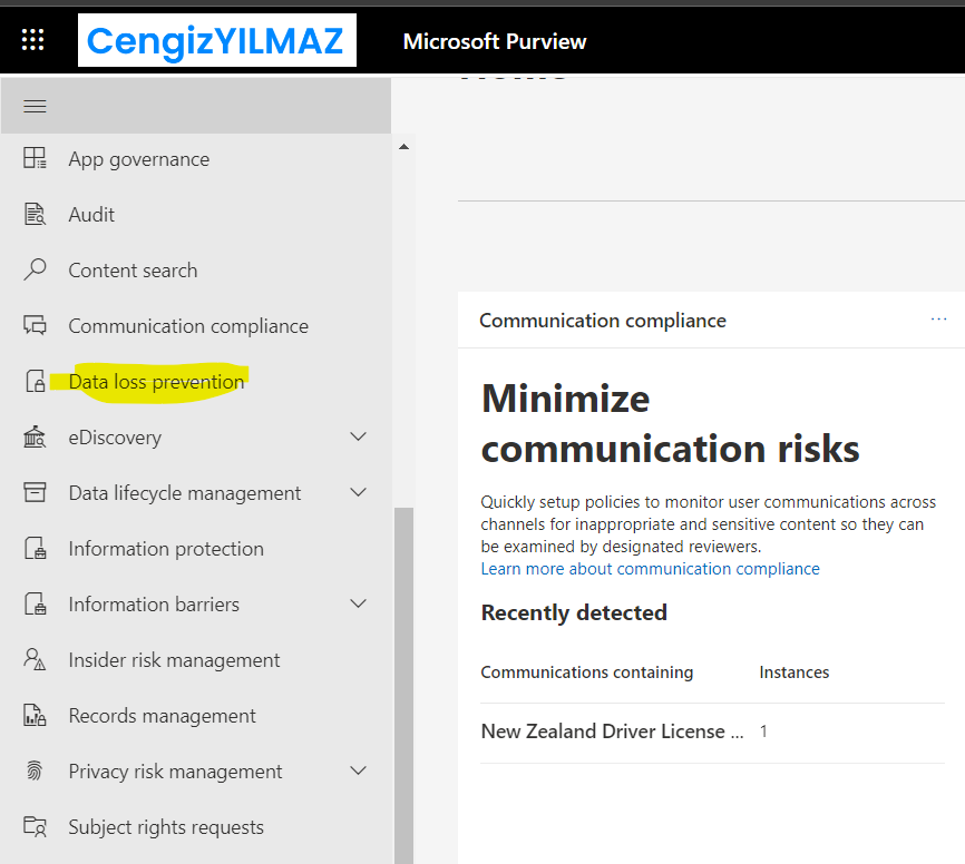 Daha sonra Data Loss Prevention bölümüne geliyoruz.