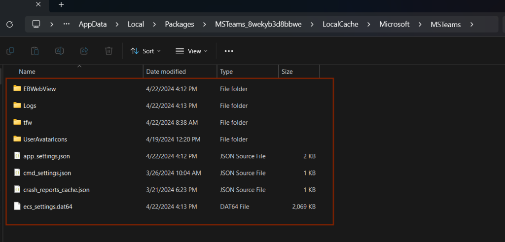 - Teams Cache Klasörü:
