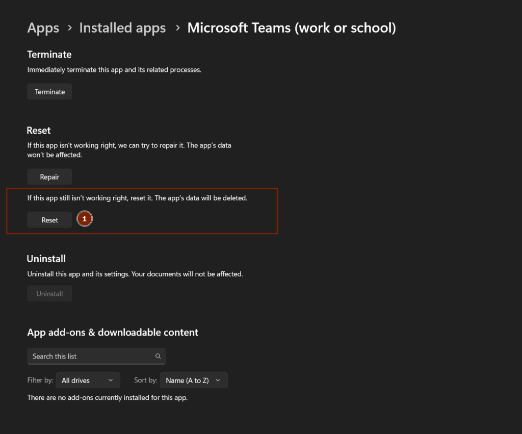 - Teams’i Sıfırlayın:
