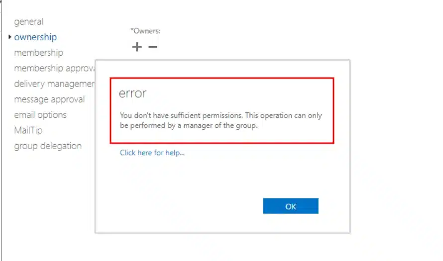 - Exchange Server This operation can only be performed by a manager of the group Hatası