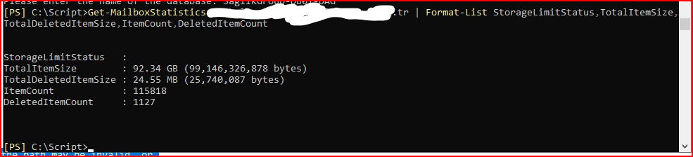 Exchange Server’da hesap boyutunu kontrol ettiğiniz de size kurtarılabilir öge ve silinmiş ögelerin boyutlarını hesaplamadan göstermektedir ama ExportRequest işlemi birlikte PST oluşturulurken kurtarılabilir ögelerde hesaplanıyor ve PST dosyası bu yüzden büyük gözüküyor.