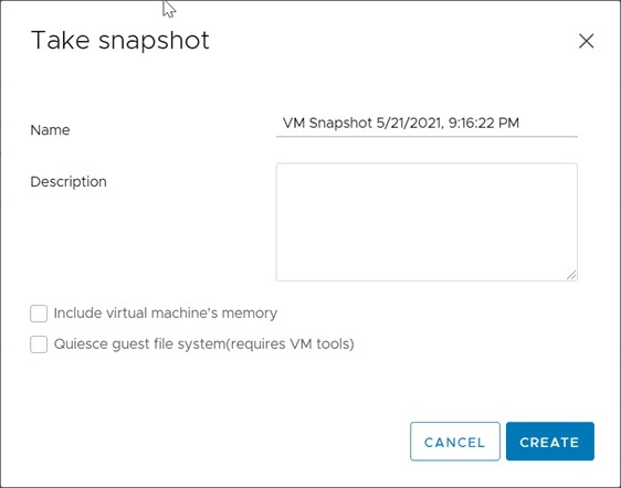 - VM Belleğini Dahil Et: Bu seçenek, sanal makinenin bellek durumunu da Snapshot’a dahil eder. Aktif uygulamaların ve işlemlerin tam olarak o anki durumlarını yakalar, böylece Snapshot geri yüklendiğinde sanal makine aynı çalışma durumunda devam eder. Bellek Snapshot’ı, özellikle dinamik veri işleyen uygulamalar için önemli olabilir.