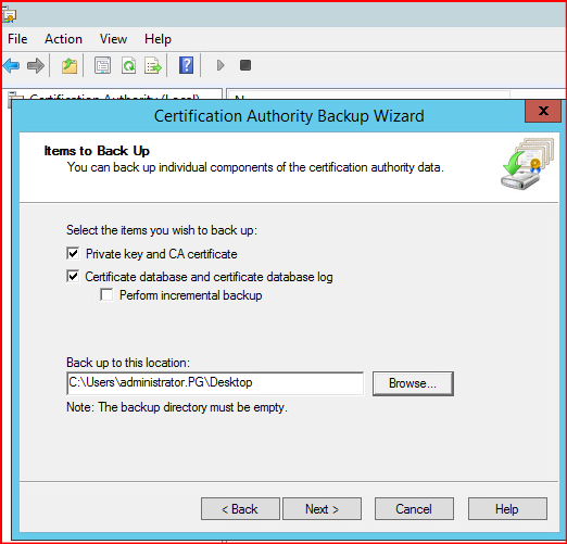 AD CA yedekleme işlemi için üç ana bileşen bulunmaktadır, bunlar aşağıdaki gibidir;