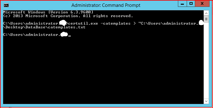 certutil.exe –catemplates > "c:Desktoptemplates.txt"