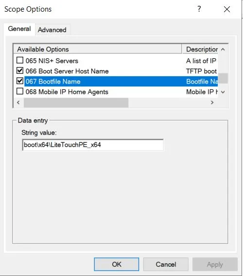 - O67 – Bootfile Name değerini aktif hale getiriyoruz.