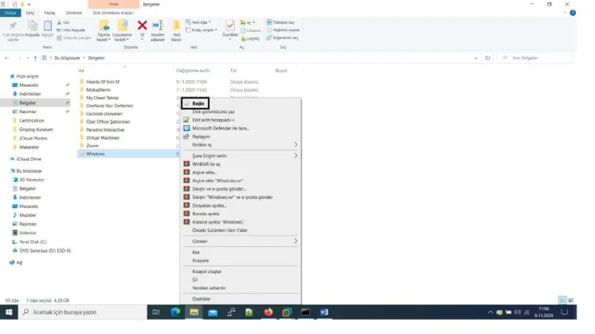 Daha sonra ESDdosyasını kopyalamamız gerekmektedir, bu işlemler için öncelikle CMD‘yi yönetici olarak çalıştırmamız gerekiyor ve aşağıda ki komutları sıra sıra çalıştırmalıyız.