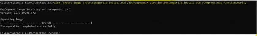 dism /export-image /SourceImageFile:install.esd /SourceIndex:4 /DestinationImageFile:install.wim /Compress:max /CheckIntegrity